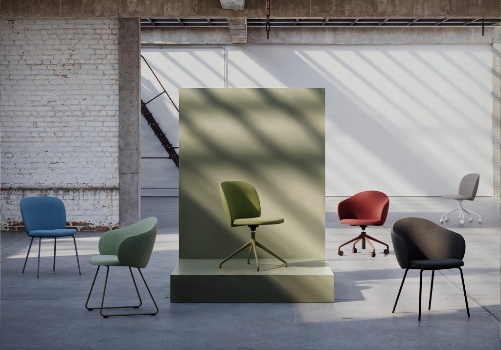 Volta revisits the upholstered chair in an essential and contemporary way. Its name, inspired by the Valencian expression “donar-li altra volta”, conveys the idea of a fresh perspective. Its rounded silhouette evokes a sense of continuity and movement, striking a harmonious balance between comfort and visual delicacy.