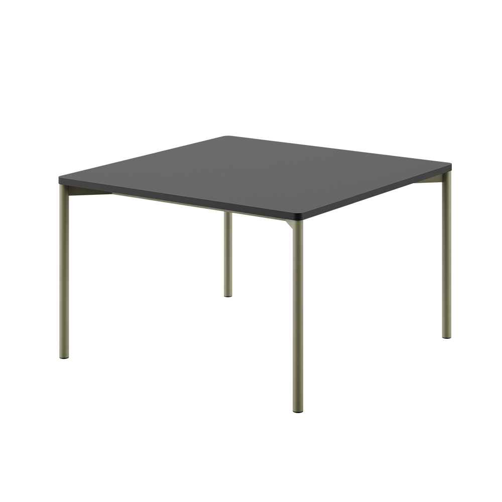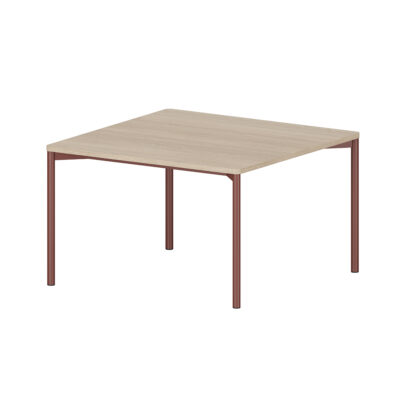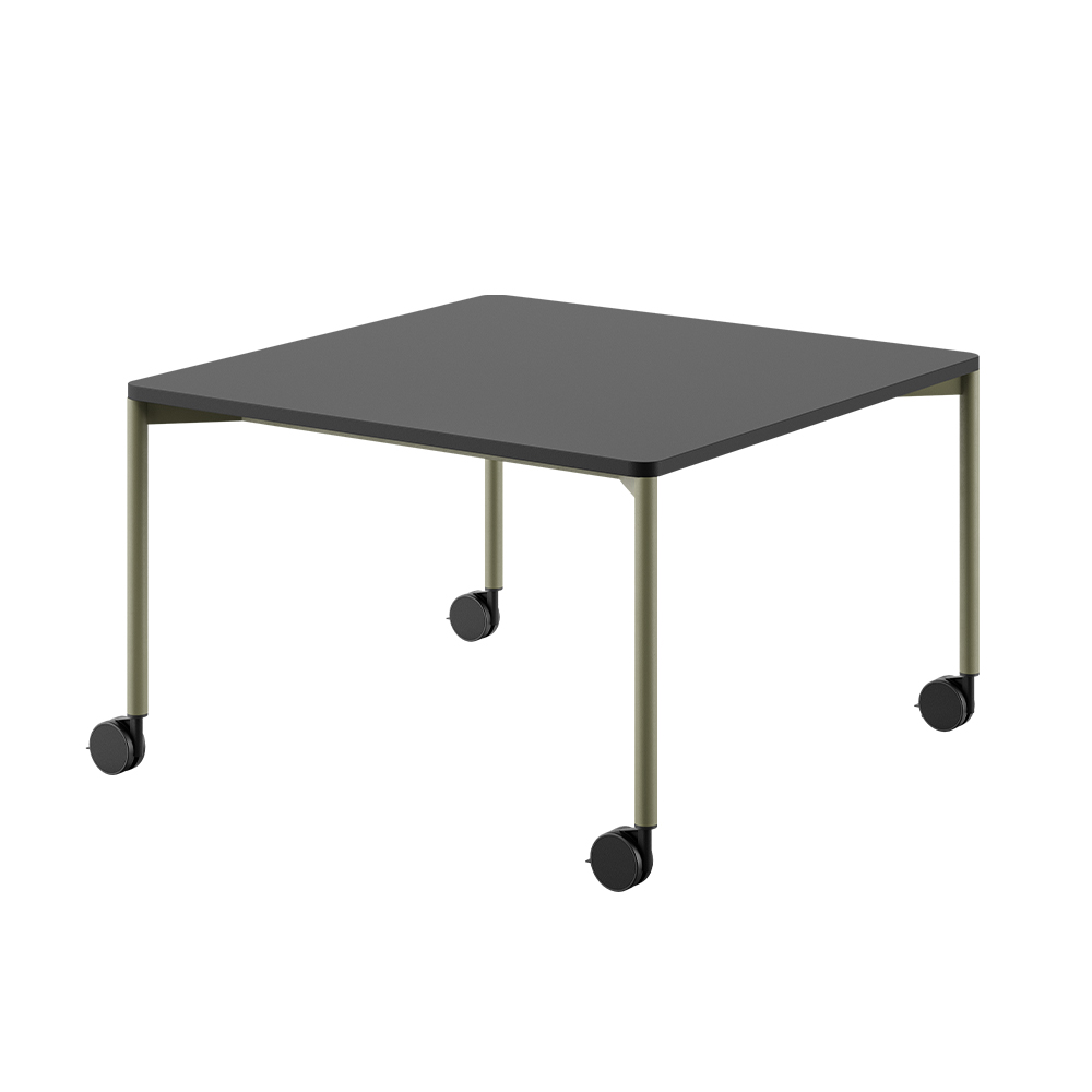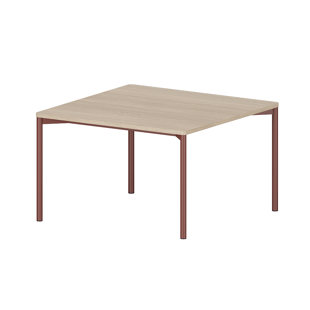 De forma rectangular, cuadrada o redonda, los tableros de las mesas están disponibles en 3 acabados: laminado negro, blanco o arce. Pueden tener un borde en ABS del mismo color que la estructura de hierro, destacando la atención a los detalles.