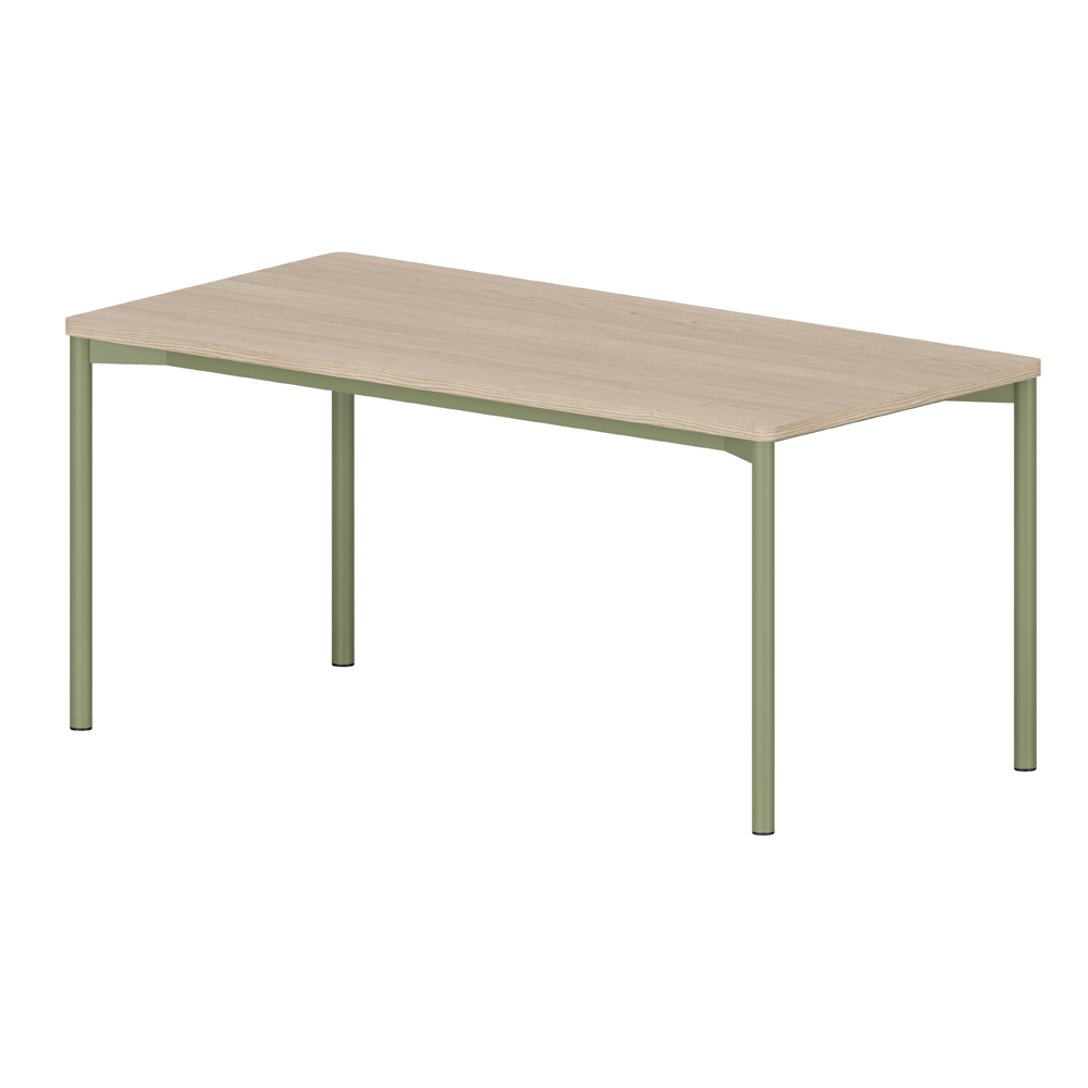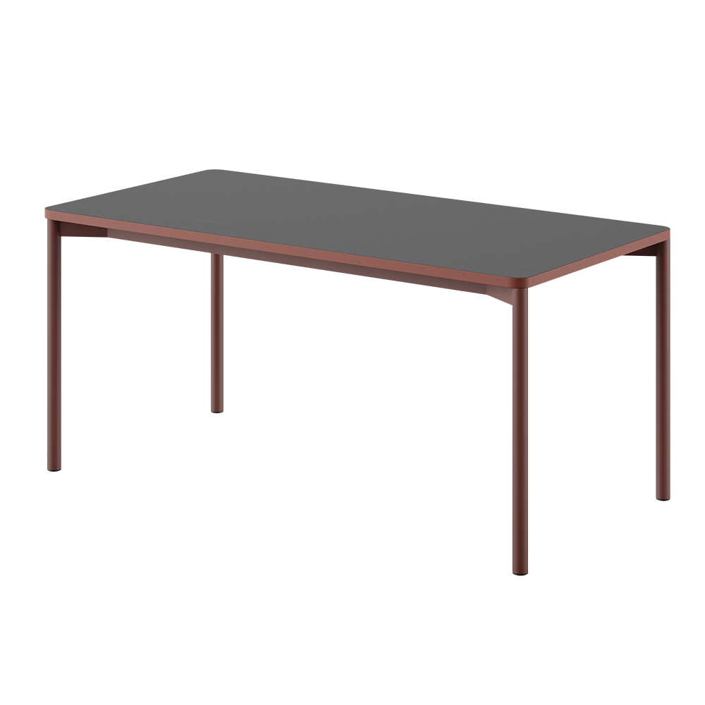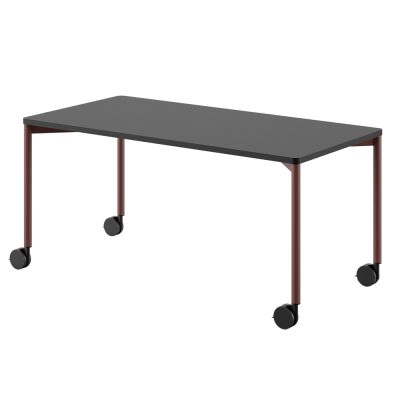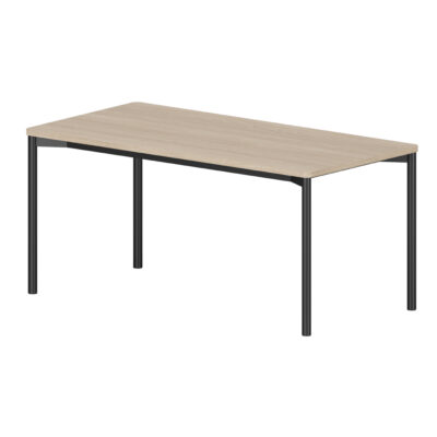 De forma rectangular, cuadrada o redonda, los tableros de las mesas están disponibles en 3 acabados: laminado negro, blanco o arce. Pueden tener un borde en ABS del mismo color que la estructura de hierro, destacando la atención a los detalles.